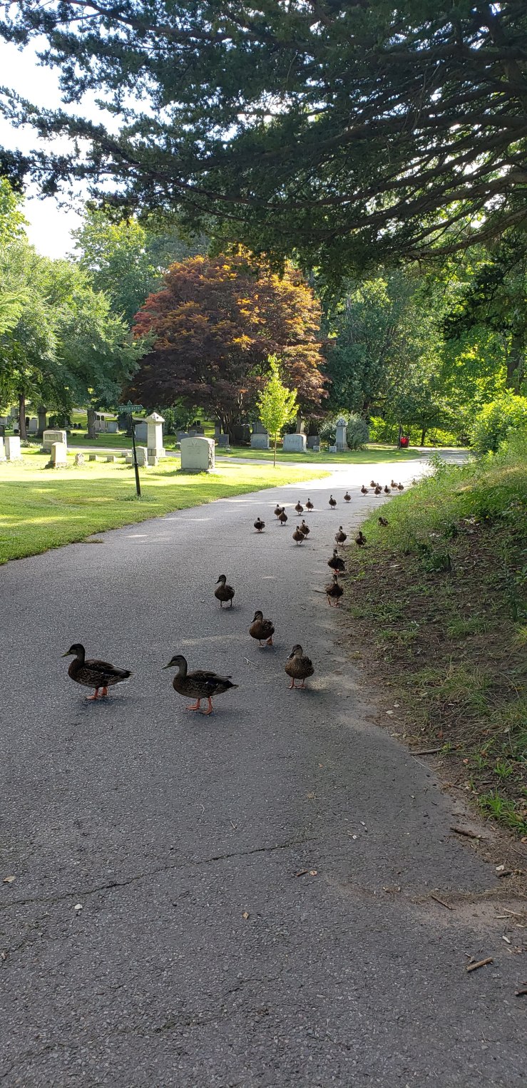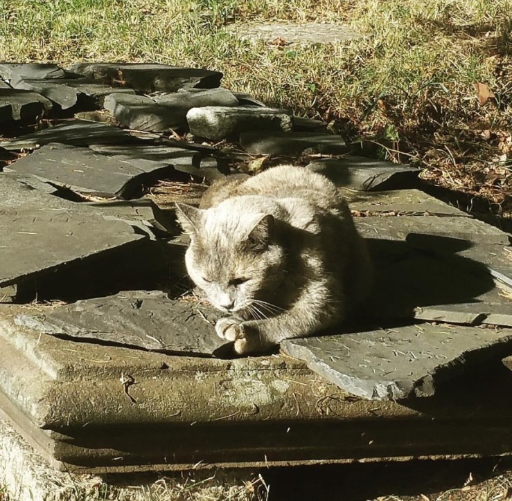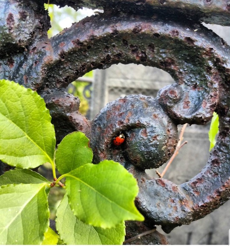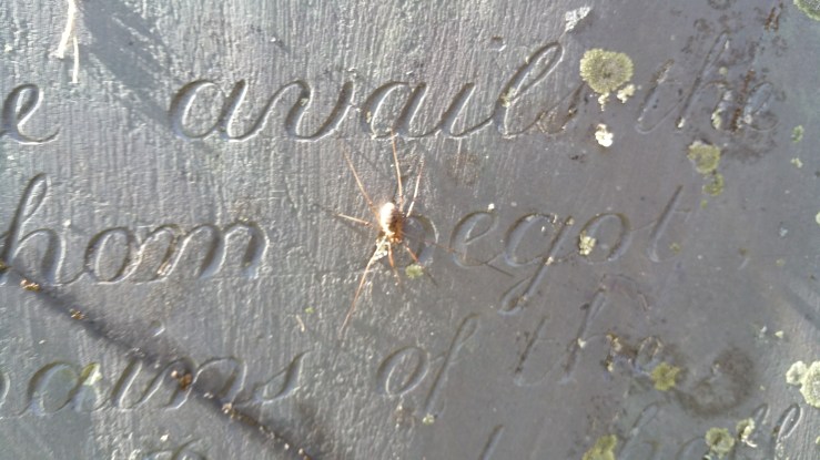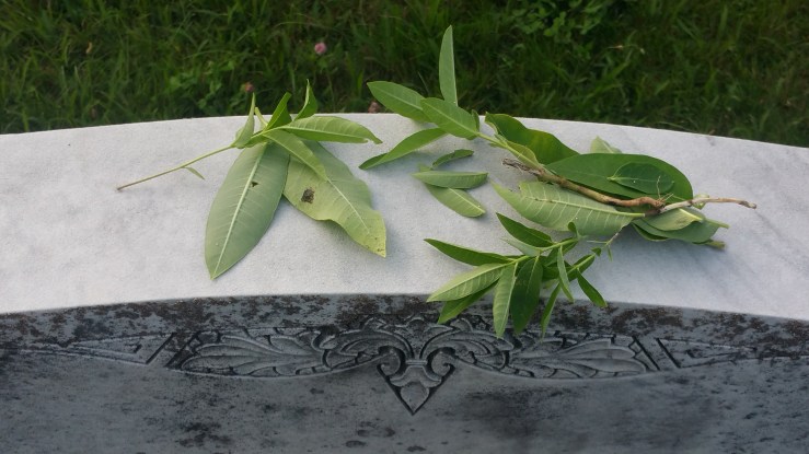 Abandoned graveyards are refuges to the wild. The weeds grow sometimes into jungles. Some have been abandoned for decades and have become forested. If you take on the restoration of an abandoned space it is kind to show compassion to its occupants.When you clean a stone, carefully remove the spiders. Leave the wild growing milkweed, save the monarch eggs from the small plants in the mowing paths and raise and release them.Be mindful of the creatures of the graveyard. Make friends with the crows. Smile with the grinning grasshopper and maybe leave a little of the wild where there are not stones.I suggest taking a look around any project you are about to start. Apart from looking at historic plantings that should be saved also look for plants that attract pollinators. If a plant is in the way can it be moved elsewhere? It is good to remember that an alternative to mowing near stones is planting low growing native ground cover. This both protects the stone from breakage caused by landscaping equipment but creates a more natural looking landscape.Of course ultimately in order to restore a site there will be some landscaping needed but make decisions knowing that we share these places with all kinds of creatures that need to be protected and respected.